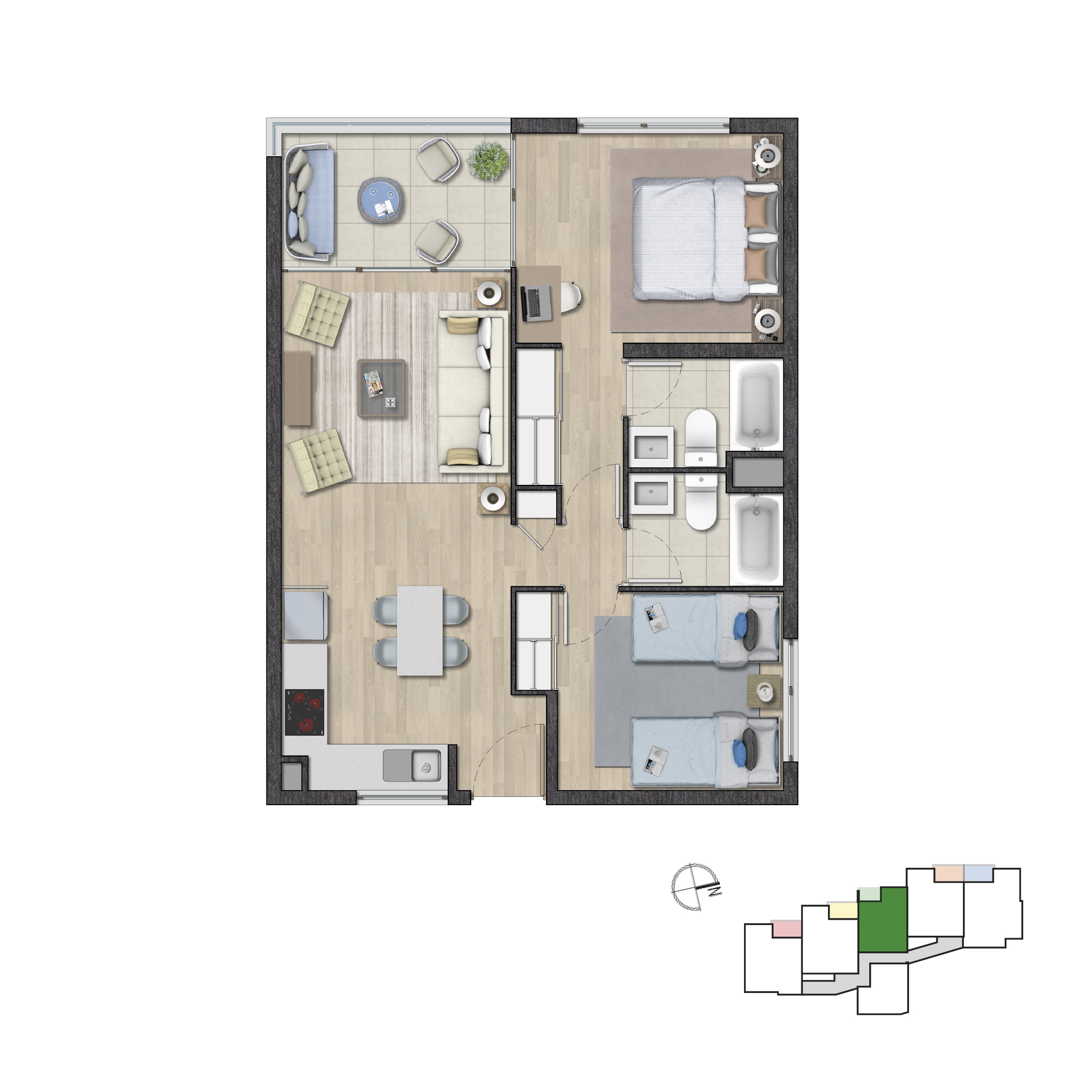 La infraestructura del edificio proporciona una amplia gama de instalaciones recreativas, convirtiendo a tu segunda vivienda en el lugar ideal para el entre- tenimiento y el descanso, compartido entre tu familia y/o amigos.